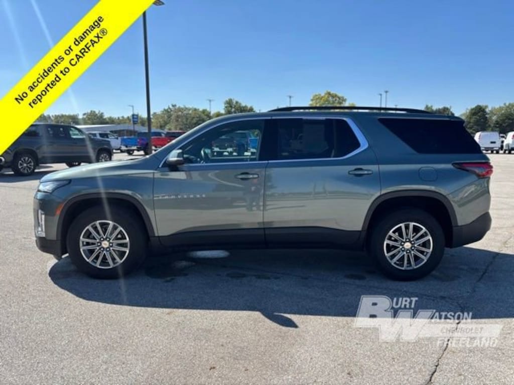 Recent Arrival! CARFAX One-Owner. Clean CARFAX. Odometer is 21742 miles below market average! Priced below KBB Fair Purchase Price!*** WE DELIVER ***Silver Sage Metallic 2023 Chevrolet Traverse LT 1LT 4D Sport Utility 3.6L V6 SIDI VVT 9-Speed Automatic AWDCertified. Chevrolet Certified Pre-Owned Details:* Limited Warranty: 12 Month/12,000 Mile (whichever comes first) from certified purchase date* 172 Point Inspection* Warranty Deductible: $0* Roadside Assistance* Vehicle History* 24 months/24,000 miles (whichever comes first) Certified Pre-Owned Scheduled Maintenance Plan and 3 days/150 miles (whichever comes first) Vehicle Exchange Program. SiriusXM 3-month trial subscription.* Powertrain Limited Warranty: 72 Month/100,000 Mile (whichever comes first) from original in-service date* Transferable Warranty1st & 2nd Row All-Weather Floor Liner (LPO), 2-Way Manual Front Passenger Seat Adjuster, 3.49 Axle Ratio, 3rd Row All-Weather Floor Liner (LPO), 3rd row seats: split-bench, 4-Wheel Disc Brakes, 6 Speakers, 6-Speaker Audio System Feature, 8-Way Power Driver Seat Adjuster, ABS brakes, Air Conditioning, Alloy wheels, AM/FM radio: SiriusXM, Apple CarPlay/Android Auto, Auto High-beam Headlights, Automatic temperature control, Black Roof Rails, Brake assist, Bumpers: body-color, Compass, Delay-off headlights, Driver door bin, Driver vanity mirror, Dual front impact airbags, Dual front side impact airbags, Electronic Stability Control, Emergency communication system, Exterior Parking Camera Rear, Floor Liner Package (LPO), Four wheel independent suspension, Front anti-roll bar, Front Bucket Seats, Front Center Armrest, Front dual zone A/C, Front reading lights, Fully automatic headlights, Garage door transmitter, Heated door mirrors, Heated Driver & Front Passenger Seats, Heated front seats, Heavy-Duty Cooling System, Hitch Guidance w/Hitch View, Illuminated entry, Integrated Cargo Liner (LPO), Leather steering wheel, Low tire pressure warning, Occupant sensing airbag, Outside temperature display, Overhead airbag, Overhead console, Panic alarm, Passenger door bin, Passenger vanity mirror, Power door mirrors, Power Driver Lumbar Control, Power driver seat, Power Liftgate, Power steering, Power windows, Preferred Equipment Group 1LT, Premium Cloth Seat Trim, Radio data system, Radio: Chevrolet Infotainment 3 Plus System, Rear air conditioning, Rear anti-roll bar, Rear reading lights, Rear window defroster, Rear window wiper, Remote keyless entry, Security system, SiriusXM w/360L, Speed control, Speed-sensing steering, Spoiler, Steering wheel mounted audio controls, Tachometer, Telescoping steering wheel, Tilt steering wheel, Traction control, Trailering Assist Guidelines, Trailering Equipment, Trip computer, Turn signal indicator mirrors, Variably intermittent wipers, Voltmeter, Wheels: 18 Bright Silver-Painted Aluminum.