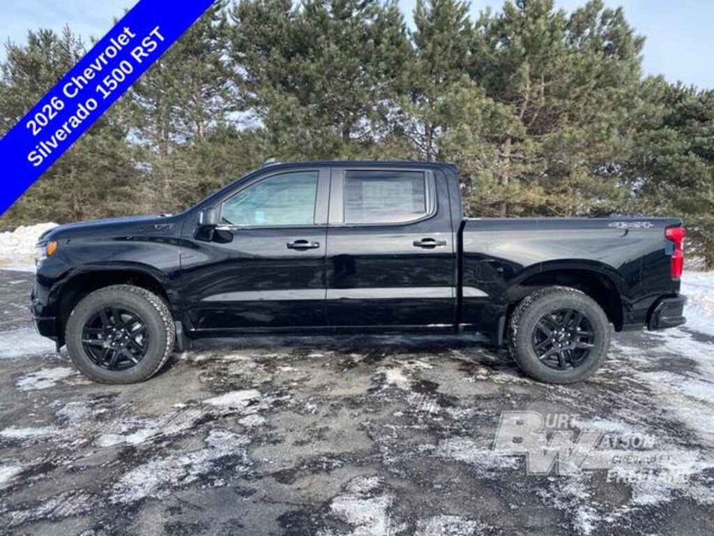 Factory MSRP: $64,455 $10,644 off MSRP!*** WE DELIVER ***Black 2026 Chevrolet Silverado 1500 RST EcoTec3 5.3L V8 4D Crew Cab 4WD 10-Speed Automatic10-Way Power Driver Seat w/Lumbar, 12.3 Multicolor Reconfigurable Digital Display, 120-Volt Bed Mounted Power Outlet, 120-Volt Interior Power Outlet, 2 USB Data Ports, 220 Amp Alternator, 3.23 Rear Axle Ratio, 4-Wheel Disc Brakes, 40/20/40 Front Split-Bench Seat, 6 Speakers, 6-Speaker Audio System, ABS brakes, Air Conditioning, All Star Edition Plus, All-Star Edition, All-Weather Floor Liner (LPO) (AAK), Alloy wheels, AM/FM radio: SiriusXM with 360L, Apple CarPlay/Android Auto, Auto High-beam Headlights, Auto-Locking Rear Differential, Automatic Emergency Braking, Automatic temperature control, Bluetooth® For Phone, Brake assist, Bumpers: body-color, Chevytec Spray-On Black Bedliner, Cloth Seat Trim, Color-Keyed Carpeting Floor Covering, Compass, Convenience Package, Convenience Package II, Dark Appearance Package, Deep-Tinted Glass, Delay-off headlights, Driver door bin, Driver vanity mirror, Dual Exhaust w/Polished Outlets, Dual front impact airbags, Dual front side impact airbags, Dual Rear USB Ports (Charge Only), Dual-Zone Automatic Climate Control, Electric Rear-Window Defogger, Electronic Cruise Control, Electronic Stability Control, Electronic Transmission Range Selector Shifter, Emergency communication system: OnStar, EZ Lift Power Lock & Release Tailgate, Floor Mounted Center Console, Following Distance Indicator, Forward Collision Alert, Front anti-roll bar, Front Bucket Seats, Front Center Armrest w/Storage, Front dual zone A/C, Front fog lights, Front Frame-Mounted Black Recovery Hooks, Front LED Fog Lamps, Front Pedestrian Braking, Front reading lights, Front Rubberized Vinyl Floor Mats, Front wheel independent suspension, Fully automatic headlights, HD Rear Vision Camera, HD Surround Vision, Heated door mirrors, Heated Driver & Front Outboard Passenger Seats, Heated front seats, Heated Power-Adjustable Outside Mirrors, Heated Steering Wheel, Heated steering wheel, Heavy-Duty Air Filter, High Capacity Suspension Package, High Gloss Black Mirror Caps, Hill Descent Control, Hitch Guidance, Hitch Guidance w/Hitch View, Illuminated entry, In-Vehicle Trailering System App, Inside Rear-View Mirror w/Tilt, Integrated Trailer Brake Controller, IntelliBeam Automatic High Beam On/Off, Keyless Open & Start, Lane Keep Assist w/Lane Departure Warning, LED Cargo Area Lighting, Low tire pressure warning, Manual Tilt/Telescoping Steering Column, Occupant sensing airbag, Off-Road Suspension, OnStar Services Capable, Outside temperature display, Overhead airbag, Overhead console, Panic alarm, Passenger door bin, Passenger vanity mirror, Perimeter Lighting, Power door mirrors, Power driver seat, Power Front Windows w/Driver Express Up/Down, Power Front Windows w/Passenger Express Down, Power Rear Windows w/Express Down, Power Sliding Rear Window w/Rear Defogger, Power steering, Power windows, Premium audio system: Chevrolet Infotainment 3 Premium, Premium Bose 7-Speaker Sound System, Protection Package, Radio data system, Radio: Chevrolet Infotainment 3 Premium System, Rear 60/40 Folding Bench Seat (Folds Up), Rear Cross Traffic Braking, Rear Pedestrian Alert, Rear reading lights, Rear Rubberized-Vinyl Floor Mats, Rear step bumper, Rear Wheelhouse Liners, Rear window defroster, Remote keyless entry, Remote Vehicle Starter System, Safety Package, Security system, Single Outlet Exhaust, SiriusXM w/360L Trial Subscription, Speed control, Speed-sensing steering, Split folding rear seat, Standard Suspension Package, Standard Tailgate, Steering Wheel Audio Controls, Steering wheel mounted audio controls, Tachometer, Teen Driver, Telescoping steering wheel, Theft Deterrent System (Unauthorized Entry), Tilt steering wheel, Tire Pr Rebates listed are for zip code 48623. Must qualify for GMS Employee purchase plan$1500 - Bonus Cash. Exp. 03/02/2026 $3250 - Customer Cash.