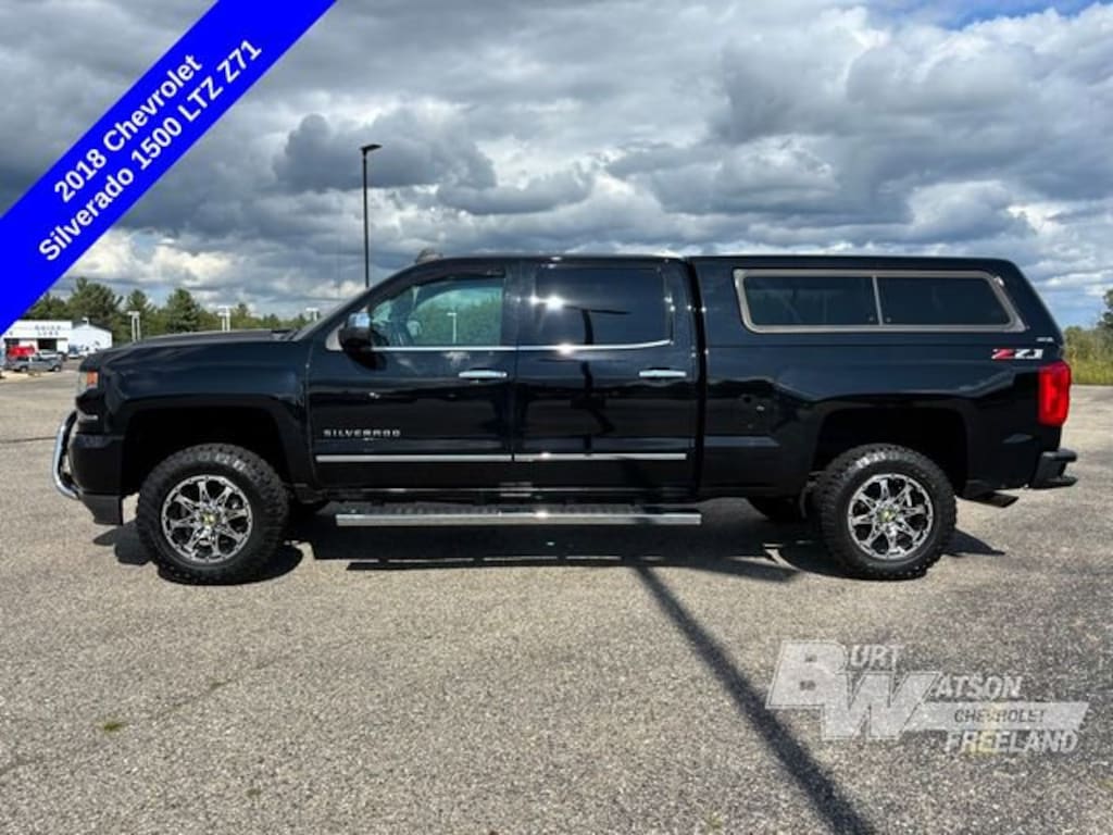 Clean CARFAX.*** WE DELIVER ***Black 2018 Chevrolet Silverado 1500 LTZ 2LZ 4D Crew Cab EcoTec3 5.3L V8 8-Speed Automatic with Overdrive 4WD110-Volt AC Power Outlet, 150 Amp Alternator, 3.42 Rear Axle Ratio, 4-Wheel Disc Brakes, 4.2 Diagonal Color Display Driver Info Center, 40/20/40 Front Split Bench Seat, 6 Speaker Audio System, 6 Speakers, 6 Rectangular Chromed Tubular Assist Steps (LPO), ABS brakes, Air Conditioning, Alloy wheels, AM/FM radio: SiriusXM, Auto-dimming door mirrors, Auto-Dimming Inside Rear-View Mirror, Auto-dimming Rear-View mirror, Automatic temperature control, Auxiliary External Transmission Oil Cooler, Bluetooth® For Phone, Bodyside moldings, Brake assist, CD player, Chevrolet Connected Access, Chevrolet w/4G LTE, Chrome Bodyside Moldings, Chrome Cap Power-Adjustable Heated Outside Mirrors, Chrome Door Handles, Chrome Mirror Caps, Color-Keyed Carpeting w/Rubberized Vinyl Floor Mats, Compass, Deep-Tinted Glass, Delay-off headlights, Driver & Front Passenger Illuminated Vanity Mirrors, Driver door bin, Driver vanity mirror, Dual front impact airbags, Dual front side impact airbags, Dual-Zone Automatic Climate Control, Electric Rear-Window Defogger, Electronic Stability Control, Exterior Parking Camera Rear, EZ Lift & Lower Tailgate, Front & Rear All-Weather Floor Mats, Front anti-roll bar, Front Center Armrest w/Storage, Front Chrome Bumper, Front dual zone A/C, Front fog lights, Front Frame-Mounted Black Recovery Hooks, Front reading lights, Front wheel independent suspension, Fully automatic headlights, Garage door transmitter, HD Radio, Heated door mirrors, Heated Driver & Front Passenger Seats, Heated front seats, Heavy-Duty Rear Locking Differential, Illuminated entry, Leather Appointed Seat Trim, Leather Wrapped Steering Wheel w/Cruise Controls, LED Cargo Box Lighting, LED Taillamps w/Signature, Low tire pressure warning, Manual Tilt/Telescoping Steering Column, Memory seat, Occupant sensing airbag, OnStar & Chevrolet Connected Services Capable, Outside temperature display, Overhead airbag, Overhead console, Panic alarm, Passenger door bin, Passenger vanity mirror, Power door mirrors, Power driver seat, Power passenger seat, Power Sliding Rear Window, Power steering, Power Sunroof, Power windows, Power Windows w/Driver Express Up, Premium audio system: Chevrolet MyLink, Radio data system, Radio: AM/FM 8 Diagonal Clr Touch Nav, Radio: AM/FM 8 Diagonal Color Touch Screen, Rear 60/40 Folding Bench Seat (Folds Up), Rear Chrome Bumper, Rear reading lights, Rear seat center armrest, Rear step bumper, Rear Wheelhouse Liners, Rear window defroster, Remote Keyless Entry, Remote keyless entry, Remote Locking Tailgate, Remote Vehicle Starter System, Security system, Single Slot CD/MP3 Player, SiriusXM Satellite Radio, Speed control, Speed-sensing steering, Split folding rear seat, Spray-On Pickup Box Bed Liner, Steering Wheel Audio Controls, Steering wheel mounted audio controls, Tachometer, Telescoping steering wheel, Theft Deterrent System (Unauthorized Entry), Thin Profile LED Fog Lamps, Tilt steering wheel, Traction control, Trailering Package, Tri-Fold Soft Tonneau Cover (LPO), Trip computer, Turn signal indicator mirrors, Universal Home Remote, Variably intermittent wipers, Voltmeter.