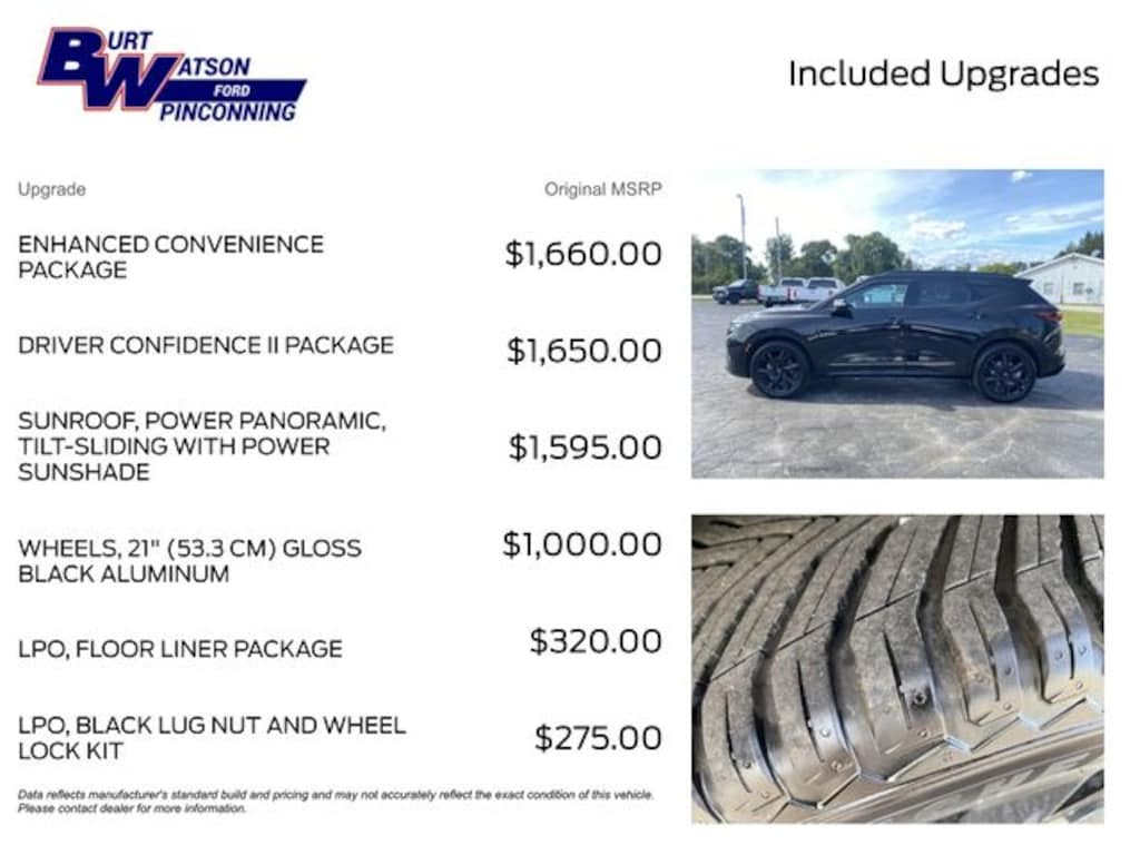 Local Trade, 172 point inspection certified, 1st oil change free with purchase, 2 Key Fobs, Ceramic coating available on all purchases at discounted pricing, service report available, Heated Seats, 1st & 2nd Row All-Weather Floor Liners (LPO), Adaptive Cruise Control, Driver Confidence II Package, Enhanced Automatic Emergency Braking, Enhanced Convenience Package, Floor Liner Package (LPO), HD Surround Vision, Heated Rear Outboard Seating Positions, LED Headlamps, Memory Settings For Driver Seat & Exterior Mirrors, Power Tilt & Telescoping Steering Column, Preferred Equipment Group 1RS, Rear Camera Mirror, Rear Camera Mirror Washer, Safety Alert Seat, Ventilated Driver & Front Passenger Seats, Wireless Charging, 3.49 Final Drive Axle Ratio, 4-Wheel Disc Brakes, 6 Speakers, 6-Speaker Audio System Feature, 6-Way Power Front Passenger Seat Adjuster, ABS brakes, Air Conditioning, Alloy wheels, AM/FM radio: SiriusXM, Apple CarPlay/Android Auto, Auto High-beam Headlights, Auto-dimming door mirrors, Auto-dimming Rear-View mirror, Automatic temperature control, Black Lug Nut & Wheel Lock Kit (LPO), Brake assist, Bumpers: body-color, Child-Seat-Sensing Airbag, Compass, Delay-off headlights, Driver door bin, Driver vanity mirror, Dual front impact airbags, Dual front side impact airbags, Electronic Stability Control, Emergency communication system: OnStar and Chevrolet connected services capable, Exterior Parking Camera Rear, Four wheel independent suspension, Front anti-roll bar, Front Bucket Seats, Front Center Armrest, Front dual zone A/C, Front reading lights, Fully automatic headlights, Garage door transmitter, Heated door mirrors, Heated Driver & Front Passenger Seats, Heated front seats, Heated steering wheel, High-Intensity Discharge Headlights, Illuminated entry, Integrated Cargo Liner (LPO), Knee airbag, Leather Shift Knob, Low tire pressure warning, Navigation System, Occupant sensing airbag, Outside temperature display, Overhead airbag, Overhead console, Panic alarm, Passenger door bin, Passenger vanity mirror, Perforated Leather-Appointed Seat Trim, Power door mirrors, Power driver seat, Power Liftgate, Power Panoramic Tilt-Sliding Sunroof, Power passenger seat, Power steering, Power windows, Radio data system, Radio: Chevrolet Infotainment 3 Plus System, Rear anti-roll bar, Rear reading lights, Rear seat center armrest, Rear window defroster, Rear window wiper, Remote keyless entry, Ride & Handling Suspension, Security system, SiriusXM w/360L, Speed control, Speed-sensing steering, Split folding rear seat, Spoiler, Steering wheel mounted audio controls, Tachometer, Telescoping steering wheel, Tilt steering wheel, Traction control, Trip computer, Turn signal indicator mirrors, Variably intermittent wipers, Voltmeter, Wheels: 20" Dark Android Machined-Face Aluminum, Wheels: 21" Gloss Black Aluminum, 1st & 2nd Row All-Weather Floor Liners (LPO), Adaptive Cruise Control, Driver Confidence II Package, Enhanced Automatic Emergency Braking, Enhanced Convenience Package, Floor Liner Package (LPO), HD Surround Vision, Heated Rear Outboard Seating Positions, LED Headlamps, Memory Settings For Driver Seat & Exterior Mirrors, Power Tilt & Telescoping Steering Column, Preferred Equipment Group 1RS, Rear Camera Mirror, Rear Camera Mirror Washer, Safety Alert Seat, Ventilated Driver & Front Passenger Seats, Wireless Charging.
