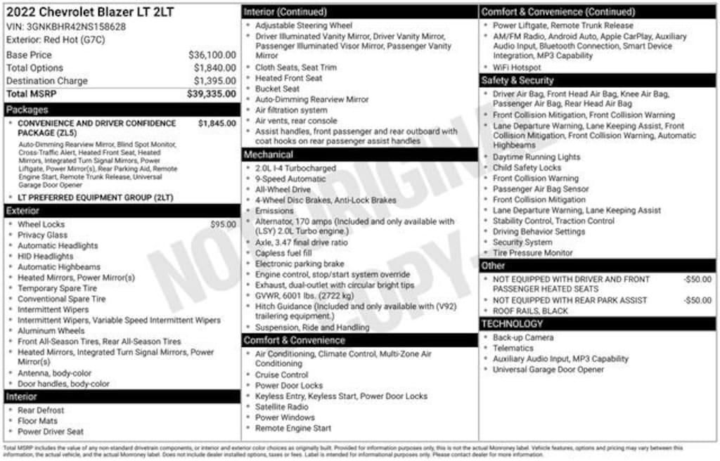 Local Trade, Non Smoker, One Owner, 172 point inspection certified, 1st oil change free with purchase, 170 Amp Alternator, 3.47 Final Drive Axle Ratio, 4-Wheel Disc Brakes, 6 Speakers, 6-Speaker Audio System Feature, ABS brakes, Air Conditioning, Alloy wheels, AM/FM radio: SiriusXM, Apple CarPlay/Android Auto, Auto High-beam Headlights, Automatic temperature control, Black Roof Rails, Brake assist, Bright Wheel Locks (LPO), Bumpers: body-color, Child-Seat-Sensing Airbag, Compass, Convenience & Driver Confidence Package, Delay-off headlights, Driver door bin, Driver vanity mirror, Dual front impact airbags, Dual front side impact airbags, Electronic Stability Control, Emergency communication system: OnStar and Chevrolet connected services capable, Exterior Parking Camera Rear, Four wheel independent suspension, Front anti-roll bar, Front Bucket Seats, Front Center Armrest, Front dual zone A/C, Front reading lights, Fully automatic headlights, Heated door mirrors, Heated Driver & Front Passenger Seats, High-Intensity Discharge Headlights, Illuminated entry, Inside Rear-View Auto-Dimming Mirror, Knee airbag, Lane Change Alert w/Side Blind Zone Alert, Leather Shift Knob, Low tire pressure warning, Not Equipped w/Driver & Fr Passenger Heated Seats, Not Equipped w/Rear Park Assist, Occupant sensing airbag, Outside Heated Power-Adjustable Body-Color Mirrors, Outside temperature display, Overhead airbag, Overhead console, Panic alarm, Passenger door bin, Passenger vanity mirror, Power door mirrors, Power driver seat, Power steering, Power windows, Preferred Equipment Group 2LT, Premium Cloth Seat Trim, Radio data system, Radio: Chevrolet Infotainment 3 System, Rear anti-roll bar, Rear Cross Traffic Alert, Rear Park Assist w/Audible Warning, Rear Power Programmable Liftgate, Rear reading lights, Rear seat center armrest, Rear window defroster, Rear window wiper, Remote keyless entry, Remote Start, Ride & Handling Suspension, Security system, SiriusXM Radio, Speed control, Speed-sensing steering, Split folding rear seat, Spoiler, Steering wheel mounted audio controls, Tachometer, Telescoping steering wheel, Tilt steering wheel, Traction control, Trip computer, Universal Home Remote, Variably intermittent wipers, Voltmeter, Wheels: 18 Bright Silver Aluminum, 170 Amp Alternator, 3.47 Final Drive Axle Ratio, 4-Wheel Disc Brakes, 6 Speakers, 6-Speaker Audio System Feature, ABS brakes, Air Conditioning, Alloy wheels, AM/FM radio: SiriusXM, Apple CarPlay/Android Auto, Auto High-beam Headlights, Automatic temperature control, Black Roof Rails, Brake assist, Bright Wheel Locks (LPO), Bumpers: body-color, Child-Seat-Sensing Airbag, Compass, Convenience & Driver Confidence Package, Delay-off headlights, Driver door bin, Driver vanity mirror, Dual front impact airbags, Dual front side impact airbags, Electronic Stability Control, Emergency communication system: OnStar and Chevrolet connected services capable, Exterior Parking Camera Rear, Four wheel independent suspension, Front anti-roll bar, Front Bucket Seats, Front Center Armrest, Front dual zone A/C, Front reading lights, Fully automatic headlights, Heated door mirrors, Heated Driver & Front Passenger Seats, High-Intensity Discharge Headlights, Illuminated entry, Inside Rear-View Auto-Dimming Mirror, Knee airbag, Lane Change Alert w/Side Blind Zone Alert, Leather Shift Knob, Low tire pressure warning, Not Equipped w/Driver & Fr Passenger Heated Seats, Not Equipped w/Rear Park Assist, Occupant sensing airbag, Outside Heated Power-Adjustable Body-Color Mirrors, Outside temperature display, Overhead airbag, Overhead console, Panic alarm, Passenger door bin, Passenger vanity mirror, Power door mirrors, Power driver seat, Power s