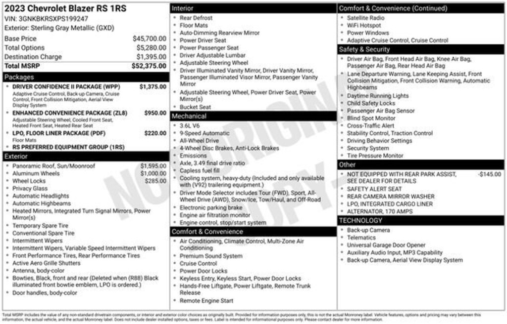 Sterling Metallic 2023 Chevrolet Blazer RS 4D Sport Utility 3.6L V6 SIDI 9-Speed Automatic with Overdrive AWD