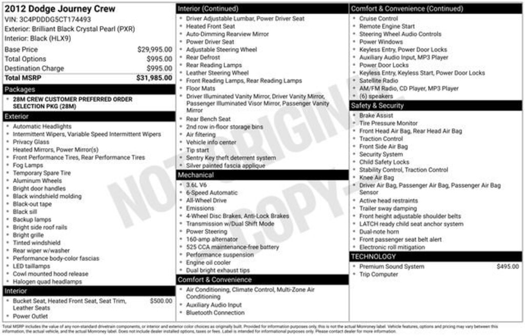 Brilliant Black Crystal Pearlcoat 2012 Dodge Journey Crew 4D Sport Utility 3.6L V6 24V VVT 6-Speed Automatic AWD