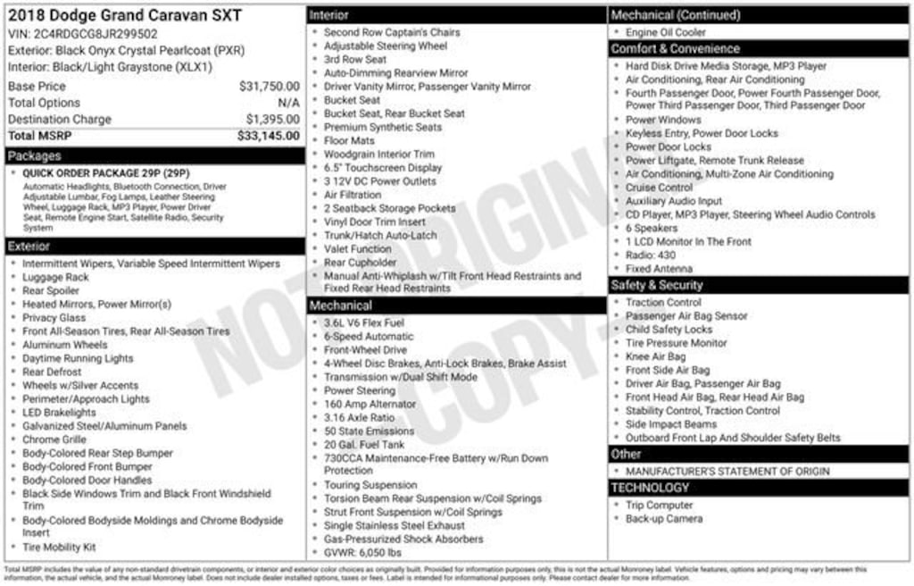 Brilliant Black Crystal Pearlcoat 2018 Dodge Grand Caravan SXT 4D Passenger Van 3.6L V6 24V VVT 6-Speed Automatic FWD