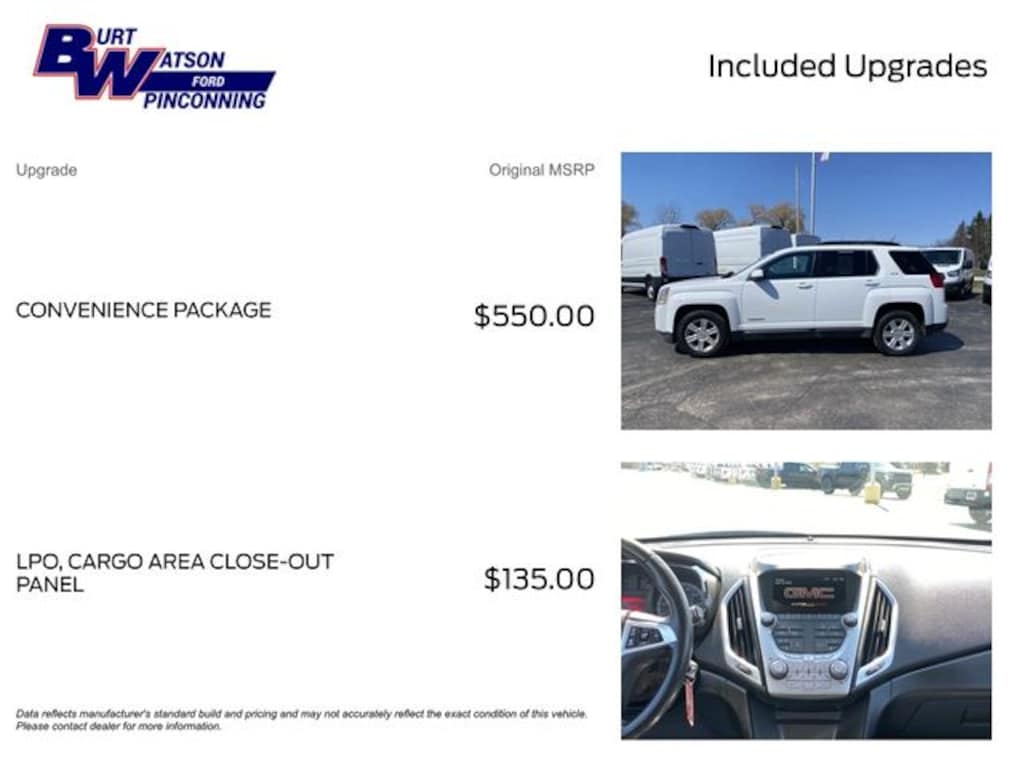 Pricing shown excludes tax, title, license, registration, or other applicable government fees. Any optional products, services, or accessories are also not reflected in the advertised price. At Burt Watson, it is our belief that every customer deserves a buying experience built on clarity and honesty. We're dedicated to doing business the right way, simply and transparently. While we make every effort to ensure the information on our site is accurate and up to date, occasional errors, omissions, or inaccuracies may occur. Additionally, there may be a delay between when a vehicle is sold and when our online inventory is updated. We encourage you to confirm all vehicle details and pricing directly with our team before purchase.