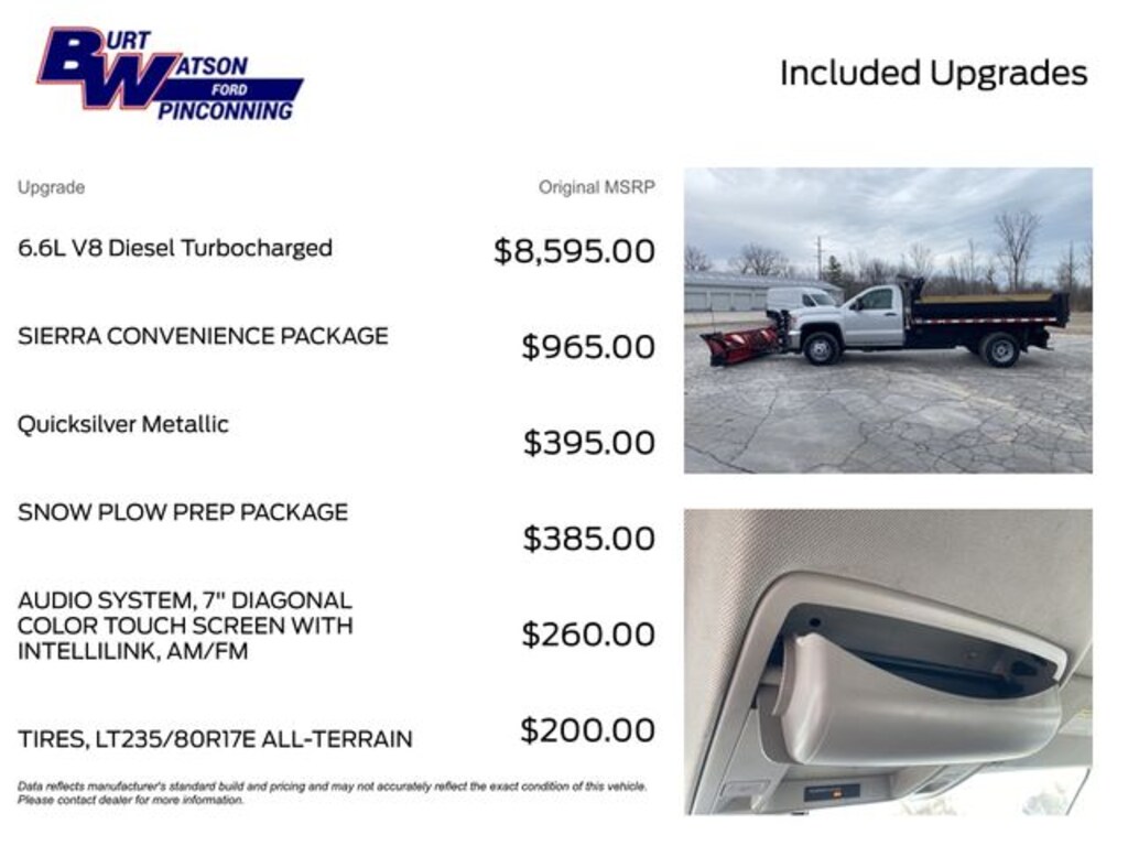 Local Trade, Non Smoker, 172 point inspection certified, 1st oil change free with purchase, Ceramic coating available on all purchases at discounted pricing, service report available, Heated Seats, Digital Key, In-Vehicle Wi-Fi, Stolen vehicle location/ recovery system, 110-Volt AC Power Outlet, 18" Painted Steel Wheels, 3.73 Rear Axle Ratio, 4 Speakers, 4-Speaker Audio System Feature, 4-Wheel Disc Brakes, 6-Speaker Audio System, ABS brakes, Air Conditioning, All-Weather Floor Liner (LPO) (DISC), AM/FM radio, Bed Liner, Bluetooth® For Phone, Brake assist, Bumpers: chrome, Chrome Recovery Hooks (LPO) (DISC), Cloth Seat Trim, Delay-off headlights, Driver door bin, Dual front impact airbags, Electronic Stability Control, Engine Block Heater, Exhaust Brake, Front anti-roll bar, Front Center Armrest w/Storage, Front License Plate Kit, Front reading lights, Front wheel independent suspension, Frontal Passenger-Side Air Bag Deactivation Switch, Fully automatic headlights, Gooseneck/5th Wheel Prep Package, Heavy Duty Front Springs, High-Intensity Discharge Headlights, Hitch Package (LPO), Integrated Trailer Brake Controller, Locking Tailgate Delete, Manual Tilt-Wheel Steering Column, Occupant sensing airbag, Overhead airbag, Overhead console, Passenger cancellable airbag, Passenger door bin, Passenger vanity mirror, Power steering, Power Windows, Preferred Equipment Group 1SA, Provision for Cab Roof-Mounted Lamp/Beacon, Radio: AM/FM Stereo w/4.2" Diagonal Color Display, Radio: AM/FM Stereo w/7" Diagonal Color Touch Screen, Remote Keyless Entry, Remote Locking Tailgate, Rubberized Vinyl Floor Mats, Sierra Convenience Package, Snow Plow Prep Package, Speed control, Standard Suspension Package, Tachometer, Tilt steering wheel, Traction control, Trailering Equipment, Trip computer, Upfitter Switches, Variably intermittent wipers, Voltmeter, 110-Volt AC Power Outlet, 18" Painted Steel Wheels, 3.73 Rear Axle Ratio, 4 Speakers, 4-Speaker Audio System Feature, 4-Wheel Disc Brakes, 6-Speaker Audio System, ABS brakes, Air Conditioning, All-Weather Floor Liner (LPO) (DISC), AM/FM radio, Bed Liner, Bluetooth® For Phone, Brake assist, Bumpers: chrome, Chrome Recovery Hooks (LPO) (DISC), Cloth Seat Trim, Delay-off headlights, Driver door bin, Dual front impact airbags, Electronic Stability Control, Engine Block Heater, Exhaust Brake, Front anti-roll bar, Front Center Armrest w/Storage, Front License Plate Kit, Front reading lights, Front wheel independent suspension, Frontal Passenger-Side Air Bag Deactivation Switch, Fully automatic headlights, Gooseneck/5th Wheel Prep Package, Heavy Duty Front Springs, High-Intensity Discharge Headlights, Hitch Package (LPO), Integrated Trailer Brake Controller, Locking Tailgate Delete, Manual Tilt-Wheel Steering Column, Occupant sensing airbag, Overhead airbag, Overhead console, Passenger cancellable airbag, Passenger door bin, Passenger vanity mirror, Power steering, Power Windows, Preferred Equipment Group 1SA, Provision for Cab Roof-Mounted Lamp/Beacon, Radio: AM/FM Stereo w/4.2" Diagonal Color Display, Radio: AM/FM Stereo w/7" Diagonal Color Touch Screen, Remote Keyless Entry, Remote Locking Tailgate, Rubberized Vinyl Floor Mats, Sierra Convenience Package, Snow Plow Prep Package, Speed control, Standard Suspension Package, Tachometer, Tilt steering wheel, Traction control, Trailering Equipment, Trip computer, Upfitter Switches, Variably intermittent wipers, Voltmeter.