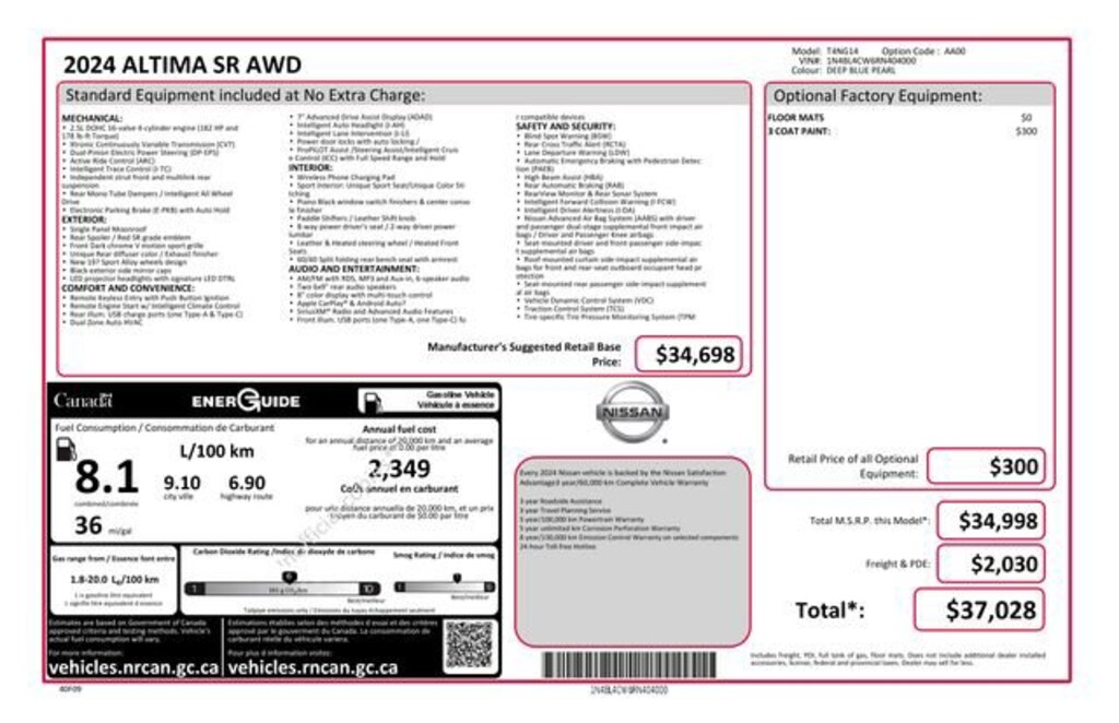 172 point inspection certified, 1st oil change free with purchase, 4-Wheel Disc Brakes, 6 Speakers, ABS brakes, Air Conditioning, Alloy wheels, AM/FM radio: SiriusXM, Auto High-beam Headlights, Blind Spot Warning, Brake assist, Bumpers: body-color, Delay-off headlights, Driver door bin, Driver vanity mirror, Dual front impact airbags, Dual front side impact airbags, Electronic Stability Control, Four wheel independent suspension, Front anti-roll bar, Front Bucket Seats, Front Center Armrest, Front reading lights, Fully automatic headlights, Illuminated entry, Knee airbag, Leather Shift Knob, Low tire pressure warning, NissanConnect featuring Apple CarPlay, Occupant sensing airbag, Outside temperature display, Overhead airbag, Overhead console, Panic alarm, Passenger door bin, Passenger vanity mirror, Power door mirrors, Power driver seat, Power steering, Power windows, Radio data system, Radio: AM/FM Audio System, Rear anti-roll bar, Rear Parking Sensors, Rear reading lights, Rear seat center armrest, Rear side impact airbag, Rear window defroster, Remote keyless entry, Security system, Speed control, Speed-sensing steering, Speed-Sensitive Wipers, Split folding rear seat, Sport Seat Trim, Steering wheel mounted audio controls, Tachometer, Telescoping steering wheel, Tilt steering wheel, Traction control, Trip computer, Unique Sport Seats, Variably intermittent wipers, Wheels: 19 Sport Alloy, 4-Wheel Disc Brakes, 6 Speakers, ABS brakes, Air Conditioning, Alloy wheels, AM/FM radio: SiriusXM, Auto High-beam Headlights, Blind Spot Warning, Brake assist, Bumpers: body-color, Delay-off headlights, Driver door bin, Driver vanity mirror, Dual front impact airbags, Dual front side impact airbags, Electronic Stability Control, Four wheel independent suspension, Front anti-roll bar, Front Bucket Seats, Front Center Armrest, Front reading lights, Fully automatic headlights, Illuminated entry, Knee airbag, Leather Shift Knob, Low tire pressure warning, NissanConnect featuring Apple CarPlay, Occupant sensing airbag, Outside temperature display, Overhead airbag, Overhead console, Panic alarm, Passenger door bin, Passenger vanity mirror, Power door mirrors, Power driver seat, Power steering, Power windows, Radio data system, Radio: AM/FM Audio System, Rear anti-roll bar, Rear Parking Sensors, Rear reading lights, Rear seat center armrest, Rear side impact airbag, Rear window defroster, Remote keyless entry, Security system, Speed control, Speed-sensing steering, Speed-Sensitive Wipers, Split folding rear seat, Sport Seat Trim, Steering wheel mounted audio controls, Tachometer, Telescoping steering wheel, Tilt steering wheel, Traction control, Trip computer, Unique Sport Seats, Variably intermittent wipers, Wheels: 19 Sport Alloy.