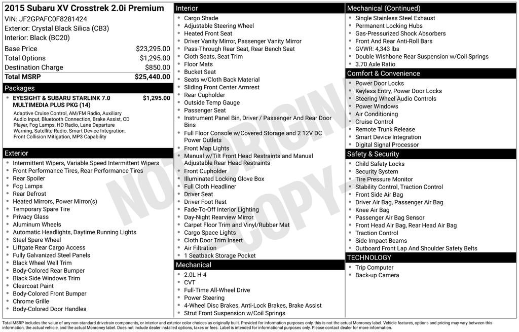 Used 2015 SubaruXV Crosstrek Premium SUV